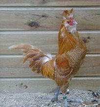Vrij krachtig ontwikkeld, gestrekt, naar achteren iets smaller wordend. Middelgroot, tamelijk breed tussen de ogen, zonder schedelverhoging. Gezicht rood, grotendeels bedekt door de baard. Tweehoornig, de hoorntjes 1 ½ à 2 cm, kegelvormig spits toelopend in een punt, van terzijde gezien ongeveer boven de ogen staande en onmiddellijk voor de kuif geplaatst. De hoorntjes staan V-vormig op de laag gewelfde kambasis; fijn van weefsel; helderrood van kleur. Rechtopstaand, vast en zijdelings afgeplat; tamelijk spits en smal van boven. De voorste kuifveren bij voorkeur iets naar voren buigend. Middellang; krachtig, enigszins gebogen aan de punt, iets opengespalkte en verhoogd liggende neusgaten (de neusdop). Variërend van licht- tot donker hoornkleurig al naargelang de kleur van het gevederte. Vol, dicht bevederd, niet te zwaar, sterk ingesnoerd, waardoor een driedelige baard ontstaat, de wangen bedekkend en naar achteren boven de ogen reikend. Liefst geheel ontbrekend, anders nauwelijks ontwikkeld en bedekt door de baard. Klein, wit, geheel door de baard bedekt. Kleur variërend van oranjerood tot roodbruin naargelang de kleurslag. Ruim middellang, rechtop gedragen, licht gebogen; halsbehang en hals-kraag goed ontwikkeld, vol en vrij dik aangezet tot vlak bij de kop. Ruim middellang met goede breedte over de gehele lengte; iets aflopend, in een ronde hoek overgaand in de staart; zadel breed; zadelbehang rijk ontwikkeld. Vol, breed, vrij gerond, diep en van terzijde gezien enigszins naar voren gedragen. Tamelijk krachtig ontwikkeld, vrij goed aangetrokken gedragen. Goed gerond. Rijk ontwikkeld, middelhoog gedragen; stuurveren breed en tamelijk gespreid; sikkels lang, breed en gebogen; staartdekveren talrijk, vrij breed en voldoende ontwikkeld. Matig diep met normale donspartij. Goed ontwikkeld, middellang, goed uit elkaar geplaatst. Middellang Vier tenen, kleur variërend naargelang de kleurslag. goed gesloten. |