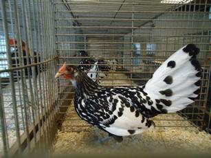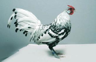 Naast de normaal gevederde hanen van de gepelde kleurslagen van de Hollandse hoenders worden ook de zgn. hennenvederige hanen erkend, doch zij dienen in afzonderlijke klassen te worden ingeschreven en beoordeeld. In tomen en trio’s worden ze in de gewone klassen, voor tomen en trio’s opengesteld, toegelaten. De hennenvederige hanen van de gepelde kleurslagen stemmen in kleur en tekening geheel overeen met de hennen van de kleurslag, waartoe zij behoren. Het halsbehang gelijkt in lengte meer op dat van de hennen dan op dat van de hanen. De sikkels en staartdekveren zijn slechts half ontwikkeld en getekend als bij de hennen. Het zadelbehang is van het hennentype en ook als zodanig getekend. De schouders zijn net als de rest van de vleugels voorzien van peltekening. Als ernstige kleur- en tekeningsfouten gelden voor hennenvederige hanen dezelfde afwijkingen van de standaard, die voor de hennen van hun kleurslag gelden. Verder gelden als ernstige fouten hanenvederige veren in hun gevederte, te sterk hennen-achtig voorkomen in lichaamsbouw, houding en kop, totaal ontbreken van sierveerontwikkeling in de staart, te kort, grove kammen met te korte doorn en het totaal ontbreken van sporen bij overjarige dieren. c 01-17 |