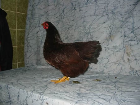 Kleurslagen: Rood Kleur en tekening van haan en hen, zoals aangegeven onder nr. 70 van de Algemene Kleur-beschrijving. Ernstige fouten Sterke harige bevedering; franje aan het gevederte. |