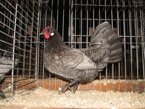 Kleurslagen: Zwart Kleur en tekening van haan en hen, zoals aangegeven onder nr. 99 van de Algemene Kleur-beschrijving, met dien verstande, dat aan de groene glans hoge eisen worden gesteld. Ogen: donkerbruin. Snavel: hoornkleurig tot zwart. Loopbenen en tenen: zwart bij overjarige dieren blauwzwart. Voetzolen: wit. Wit Kleur en tekening van haan en hen, zoals aangegeven onder nr. 98 van de Algemene Kleur-beschrijving. Ogen: donkerbruin. Snavel: hoornkleurig. Loopbenen en tenen: leiblauw. Iets gele aanslag in de sierveren van de haan wordt niet zwaar bestraft. Blauw (gezoomd) Kleur en tekening van haan en hen, zoals aangegeven onder nr. 101 van de Algemene Kleur-beschrijving. Ogen: donkerbruin. Snavel: hoornkleurig tot zwart. Loopbenen en tenen: leiblauw tot zwart. Voetzolen: wit. Patrijs Kleur en tekening van haan en hen, zoals aangegeven onder nr. 2 van de Algemene Kleur-beschrijving, met dien verstande, dat bij de hen in de veren van schouders, rug en zadel een licht gekleurde schacht aanwezig dient te zijn. De grondkleur van de haan en hen is iets roder. Ogen: donkerbruin. Snavel: hoornkleurig. Loopbenen en tenen: leiblauw. Voetzolen: wit. Zilverpatrijs Kleur en tekening van haan en hen, zoals aangegeven onder nr. 5 van de Algemene Kleur-beschrijving, met dien verstande, dat bij de hen in de veren van schouders, rug en zadel een licht gekleurde schacht aanwezig dient te zijn. Ogen: donkerbruin. Snavel: leiblauw. Loopbenen en tenen: leiblauw Koekoek Kleur en tekening van haan en hen, zoals aangegeven onder nr. 104 van de Algemene Kleur-beschrijving. Ogen: bruinrood. Snavel: lichtgrijs. Loopbenen en tenen: vleeskleurig tot wit, lichtgrijze aanslag toegestaan. |