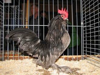Gedrongen, breed en diep, volbevederd, naar achteren iets smaller wordend; achterdeel breed en diep. Naar verhouding vrij klein. Enkel, fijn van weefsel, recht en rechtop, nauwelijks middelgroot, regelmatig getand; 5 tanden, de kamhiel weinig ontwikkeld en de buiging van de nek volgend zonder deze te raken; levendig rood. Kort en licht gebogen, kleur al naar gelang de kleurslag. Ontbrekend of zo weinig mogelijk ontwikkeld. Klein, rood, schuilgaande onder de baard. Een weinig uitstaand, levendig van uitdrukking; kleur afhankelijk van de kleurslag. Rijk ontwikkeld en zo overvloedig mogelijk, horizontaal langs weerzijden van de snavel opgroeiend tot aan en voorbij de ogen; onder de snavel verticaal naar beneden groeiend, waardoor een driedelige baard ontstaat. Vrij kort, goed gebogen, halsbehang zeer dik en uitstaand, reikend tot op de schouders en tot de basis van de staart; onder de keel en achter de baard groeit een deel van de halsveren achterwaarts, waardoor “manen”worden gevormd, die achter in de nek bij elkaar komen. Zeer breed, geheel bedekt door het vol ontwikkelde halsbehang; rijk zadelbehang. Zeer breed en diep; het bovendeel is sterk ontwikkeld en wordt naar voren gedragen. Tegen het lichaam gesloten, naar omlaag gericht en iets naar het onderlijf toe gebogen; vleugelaanzet bedekt door het halsbehang; vleugeleinden gaan schuil onder het zadelbehang. Breed. Matig gespreid en tamelijk hoog gedragen; de twee grote sikkelveren zijn slechts licht gebogen; de bijsikkels zijn kort en gebogen en bedekken maar ten dele de staartstuurveren. Breed en diep. Vrij kort, krachtig, goed bevederd, met flink ontwikkelde gierhakken. Kort, krachtig, goed uit elkaar geplaatst en van voren gezien evenwijdig aan elkaar staande; recht; kleur al naar gelang de kleurslag; flink bevederd aan de voor- en buitenzijde; de voetveren zijn kort aan het boveneinde van de loopbenen en nemen naar beneden in lengte toe; ze zijn stijf en staan horizontaal naar buiten in een boog, die aan het uiteinde omhoog gericht is; 4 tenen, de buitenteen en de middenteen zijn bevederd. Weelderig ontwikkeld. |
