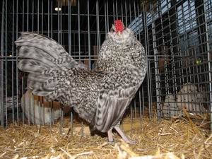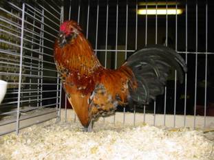 Vrij kort, breed tussen de schouders, naar achteren smaller wordend. Iets groot schijnend door de kuif, zonder schedelknobbel. Rozenkam, vrij kort, middelgroot, met driedelige doorn, welke tegen de kuif drukt, de middendoorn is de dikste en is iets langer, de buitendoorns zijn iets korter en dunner, fijn van weefsel; helderrood. Vrij kort; kleur al naar gelang de kleurslag. Vrij smal maar voldoende ontwikkeld; naar achteren gericht. Goed ontwikkeld, driedelig. Nauwelijks ontwikkeld, verborgen in de baard. Nagenoeg niet ontwikkeld en bedekt door de baard; wit. Groot, iets uitstaand; kleur al naar gelang de veerkleur. Nauwelijks middellang, sierlijk gebogen en vol bevederd; halsbehang flink ontwikkeld, de schouders goed bedekkend en manen vormend in de nek. Aflopend naar achteren; middellang, korter tonend door het grotendeels schuilgaan onder het zadelbehang. Geboren en iets naar voren gedragen. Middellang, naar beneden gericht; aan het einde naar binnen gebogen. Vrij breed. Enigszins samengevouwen, met de ruglijn een stompe hoek vormend; de grote sikkelveren zijn licht gebogen. Matig ontwikkeld met krappe donspartij. Middellang, vrij aangesloten bevederd. Middellang, fijn, glad; vier tenen; kleur al naar gelang de kleurslag.