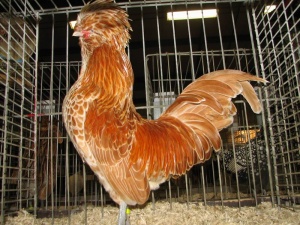 · Kleur en tekening van haan en hen De zwarte tekening van de goud zwartgezoomde kleurslag is hier wit. Aan de witte zoming worden dezelfde eisen van vorm gesteld als bij goud zwartgezoomd. De veerkleur moet warm goudgeel zijn. Donskleur: wit. ü Ernstige fouten bij haan en hen Ongelijkmatige veerkleur of in tint afwijkend van warm goudgeel; lichte schachten; veel te brede omzoming; goudgeel randje om de witte veerzoming; doorbreken van de schachtstreeptekening aan de punt van de hals- en zadelbehangveren bij de haan of van de halskraag bij de hen; slecht begrensde en onderbroken zoming; zeer onregelmatige zoming; veel geel in de sikkels en bijsikkels; geheel witte veren in de flanken en op de dijen; zwart in slagpennen en staartstuurveren; verder sterk afwijkende kleur van de witte zoming; geheel of gedeeltelijk zwarte veren. o Fouten bij haan en hen Bovenstaande ernstige fouten in mindere mate aanwezig. |