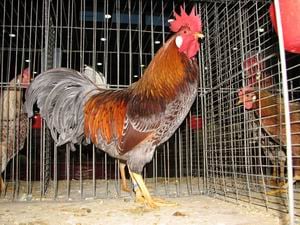 · Kleur en tekening van haan en hen De zwarte tekening van de goud zwartgezoomde kleurslag is hier blauw. Aan de blauwe tekening worden dezelfde eisen van vorm en kracht gesteld als bij goud zwartgezoomd. De veerkleur moet warm goudbruin zijn. Donskleur: van alle veergroepen licht blauwgrijs, lichter wordend naar de basis. ü Ernstige fouten bij haan en hen Ongelijkmatige veerkleur of in tint afwijkend van warm goudbruin; lichte schachten; veel te brede omzoming; goudbruin randje om de blauwe veerzoming; doorbreken van de schachtstreeptekening aan de punt van de hals- en zadelbehangveren bij de haan of van de halskraag bij de hen; slecht begrensde en onderbroken zoming; zeer onregelmatige zoming; veel bruin in de sikkels en bijsikkels; geheel blauwe veren in de flanken en op de dijen; wit in slagpennen en staartstuurveren; verder veel te donkere of veel te lichte kleur blauw; geheel of gedeeltelijk zwarte veren . o Fouten bij haan en hen Bovenstaande ernstige fouten in mindere mate aanwezig. |