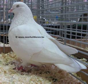 Fouten: Te zwaar; te groot; ronde kop; vooruittredend voorhoofd; te korte of te lange hals; rood in de ogen; andere dan blanke snavel; andere dan bleke oogranden. Beoordeling: ü Algemeen voorkomen ü Type en stand ü Ogen en oogranden ü Kopvorm en snavel ü Bevedering, Kleur Ringmaat: 8 mm |
