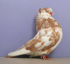 Fouten: Lang of smal lichaam; dunne hals; vlakke borst; te hoge of te vlakke stand; vlak of steil (niet naar voren uitbuigend) voorhoofd, platte schedel; korte, dikke of afhangende snavel, onzuivere snavelkleur; veel rood in de iris; te brede of lichte oogranden; veerarme kap of smalle kap; bevederde voeten; erg losse bevedering; matte of onzuivere kleur, minder dan 6 of meer dan 10 witte slagpennen. Beoordeling: ü Algemeen voorkomen ü Type en stand ü Kop en snavel ü Hals ü Ogen en oogranden ü Bevedering ü Kleur en tekening Ringmaat: 7 mm. |