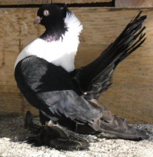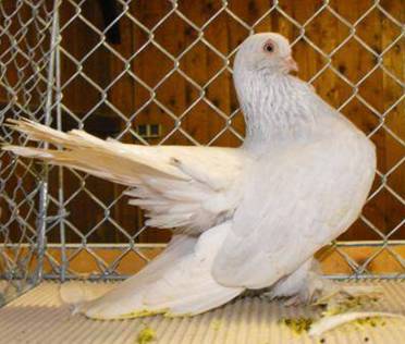 Fouten: Te smal, te lang lichaam; te hoge stand; smalle staart, te smalle staartveren, holle staart, gaping(en) in de staart, te lage staartdracht, minder dan 14 staartpennen; lange, smalle kop, platte kop; dunne of lange snavel; veerarme, scheve of onderbroken schelpkap bij witborst; niet sidderhalzig; onbevederde tenen; sterk afwijkende kleur of tekening; witte slag- en/of staart-pennen. Beoordeling: ü Algemeen voorkomen ü Type en stand ü Staart ü Kop en hals, sidderen ü Voetbevedering ü Kleur en tekening Ringmaat: 7 mm. |