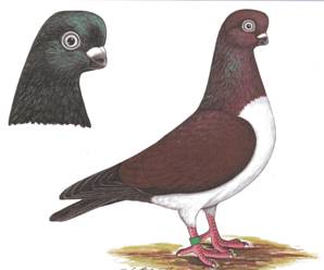 Kleur en tekening: Zie voor kleuren het hoofdstuk “Specificatie van kleuren” in de NBS-standaard. De kleuren intensief, respectievelijk zuiver. Roodgeband en geelgeband: roomwit met rode respectievelijk gele banden; kleurspatten op de hals en in de nek zijn toegestaan. Witgeband: banden bij voorkeur smal en doorlopend. Witbuik: wit onderlichaam ongeveer vanaf het midden van de voorhals tot aan de aars (kievit-getekend). |