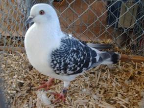 Kleur en tekening: Grondkleur bij alle kleurslagen heel teer egaal blauwgrijs; de onderkleur van de bevedering is donker. De slagpennen en de staartband donker; achter de staartband nog een lichte zoom. Op de einden van de voetbevedering een donkere band. Ongeband: zonder enige aanduiding van vleugelpatroon. Witgeband: op de vleugelschilden twee evenwijdig lopende witte banden, aan de achterzijde fijn donkergrijs gezoomd. Witgeschubd: op de vleugelschilden driehoekige, witte, donkergrijs gezoomde schubtekening in de verhouding 5 : 3 met de grondkleur. Bij gesloten vleugels is niet zichtbare schimmel in de slagpennen toegestaan. Geringe schubtekening op rug en voetbevedering is toegestaan. Porseleinkleurig: de tekening van het vleugelpatroon conform witgeschubd met tussen de witte schub en donkergrijze zoom een tere roodgele overgangskleur. Op de slagpennen en bij voorkeur op elke staartpen een witte vlek (spiegelvlek). Bij gesloten vleugels niet zichtbare schimmel en/of roest in de slagpennen is toegestaan. Geringe schubtekening op rug en voetbe-vedering is toegestaan. Zwartgeband: op de vleugelschilden twee evenwijdig lopende zwarte banden. Gekrast: vleugelschild met driehoekig zwarte krastekening in de verhouding 5 : 3 met de grondkleur. Krastekening op het schouderhart en de rug is toegestaan. |