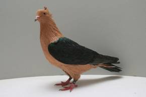 Beoordeling: ü Algemeen voorkomen ü Koper- respectievelijk goudkleur en glans ü Overige kleur en glanszoom ü Type en stand ü Puntkap, oogkleur, snavelkleur Richtlijnen voor de beoordeling Van primaire betekenis is een gelijkmatige, glansrijke koper- respectievelijk goudkleur van kop tot in de kiel. Iets donkerder of lichter is niet van belang. Hoe breder de glanszoom van de veren, hoe waardevoller het dier. Voor een hoger predicaat moeten verder die onderdelen van de duif, welke direct opvallen foutloos zijn. Belangrijk is daarbij de kevergroene glanszoom op rug en vleugelschilden, hoe breder hoe beter. Geringe afwijking in snavelkleur is voor de hoogste predicaten toegestaan. Ringmaat: 7 mm. |