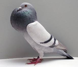 Fouten: Te lang of te smal lichaam, te lange benen; te lage, te steile of horizontale stand; geen actie; kleine of “stijve” ballon; dunne benen; niet doorgekleurde snavel; witte veren bij gekleurde kleurslagen; losse bevedering. Beoordeling: ü Algemeen voorkomen ü Type en stand ü Actie ü Ballon ü Oogkleur ü Kleur en tekening Ringmaat: 8 mm. |
