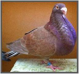 Fouten: Te smal, te opgerichte stand; te weinig actie; smal voorhoofd; te veel kropvel; afwijkende vleugeldracht, ook tijdens actie; te dunne of te lange snavel; te vlezige oogranden; afwijkende oogkleur; onvoldoende kleur. Beoordeling: ü Algemeen voorkomen ü Type en stand ü Actie ü Kop ü Snavel en wratten ü Krop ü Ogen en oogranden ü Kleur en tekening Ringmaat: 9 mm. |