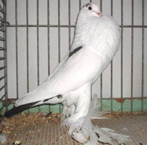 Fouten: Zwaar en/of grof type; te horizontale houding; te ronde ballon; gekleurde bovensnavel; witte staartpen(nen); volledig witte kop. Beoordeling: ü Algemeen voorkomen ü Type en stand ü Actie ü Hals- en beenlengte ü Ballon ü Kop en snavel ü Kleur en tekening ü Voetbevedering Ringmaat: 11 mm. |