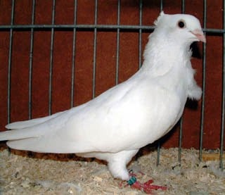 Fouten: Smalle borst; onderbroken voorhoofdslijn, kneep, platte schedel, misvormde kap, te lange snavel, gekleurde snavel of nagels; keelwam; ontbrekende jabot; andere dan donkere ogen; rode oogranden; bevederde benen; gekleurde veren. Beoordeling: ü Algemeen voorkomen ü Type en stand ü Kop en kap ü Jabot ü Snavel, ogen en oogranden Ringmaat: 8 mm. |
