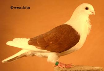Fouten: Te grof type; te grove kop, gedeukt voorhoofd; te lange of te korte snavel; aangelopen snavel; te weinig jabot; onregelmatig gekleurd schild; aan elke vleugel minder dan 7 of meer dan 10 witte buitenste slagpennen. Beoordeling: ü Algemeen voorkomen ü Type en stand ü Kop en snavel ü Jabot ü Kleur en tekening Ringmaat: 8 mm. |