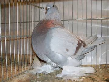 Fouten: Klein, smalle borst, afhellende houding, slecht afgedekt e rug, te lange, korte of onderbroken voetbevedering, ontbrekende gierhakken; hoekige kop, grove oogranden; te lange of te korte snavel; te korte of te dunne hals; te brede staart; gebrekkige kleur en tekening. Beoordeling: ü Algemeen voorkomen ü Type en grootte ü Stand ü Voetbevedering ü Kop- en snavelvorm ü Oogkleur ü Kleur en tekening Ringmaat: 13 mm. |