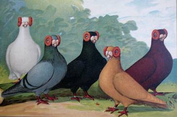 Fouten: Lang, smal lichaam; te lange staart; te hoge stand, smalle voorkop; dunne, spitse of te korte snavel, slecht ontwikkelde wratten bij volwassen dieren, sponsachtige oogranden, tranende ogen. Beoordeling: ü Algemeen voorkomen ü Type en stand ü Kop ü Oogranden ü Snavelwratten ü Oogkleur ü Kleur Ringmaat: 9 mm. |