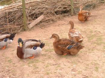 Poten: oranje tot oranjerood, bij de eend enige bruine aanslag toegestaan.